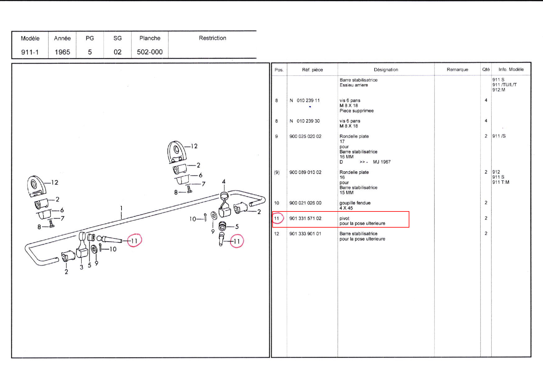 PIVOT POUR LA POSE ULTÉRIEUR / 90133157102 / N°5172