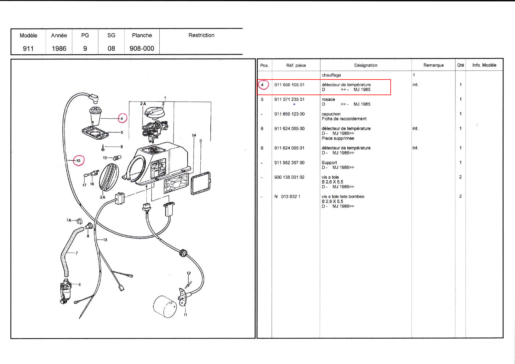 Accueil / 911 Turbo - 930 / 1978 > 1989 / Chauffage / DÉTECTEUR DE TEMPÉRATURE / 91165910501 / +FAISCEAU DE CÂBLES POUR DÉTECTEUR DE TEMPÉRATURE N°5170
