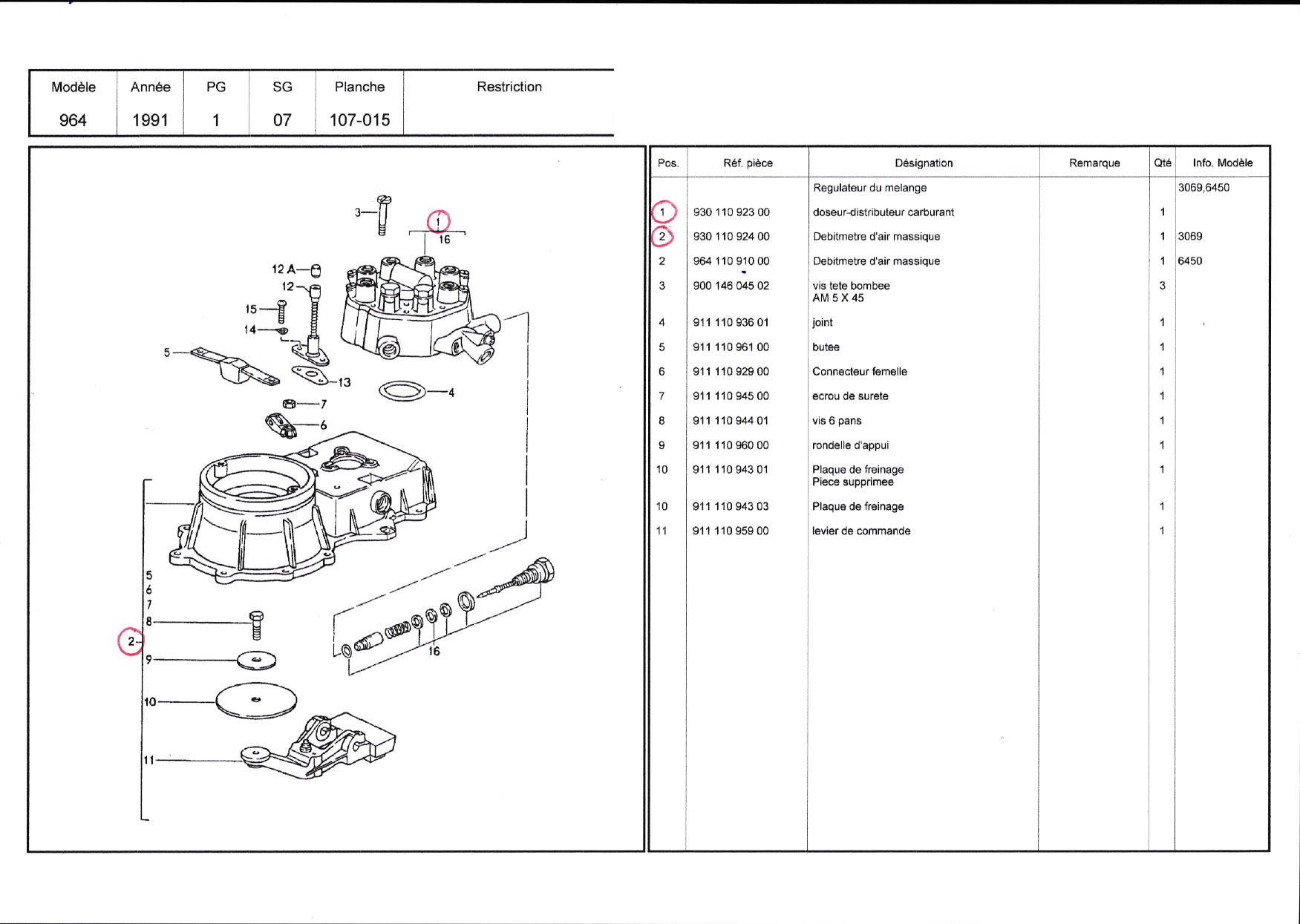 DOSEUR-DISTRIBUTEUR CARBURANT / 93011092300 / + / BOSCH 0438100145 / DÉBITMÈTRE D’AIR MASSIQUE / 93011092400 / + / BOSCH 0438100120205 / N°5206