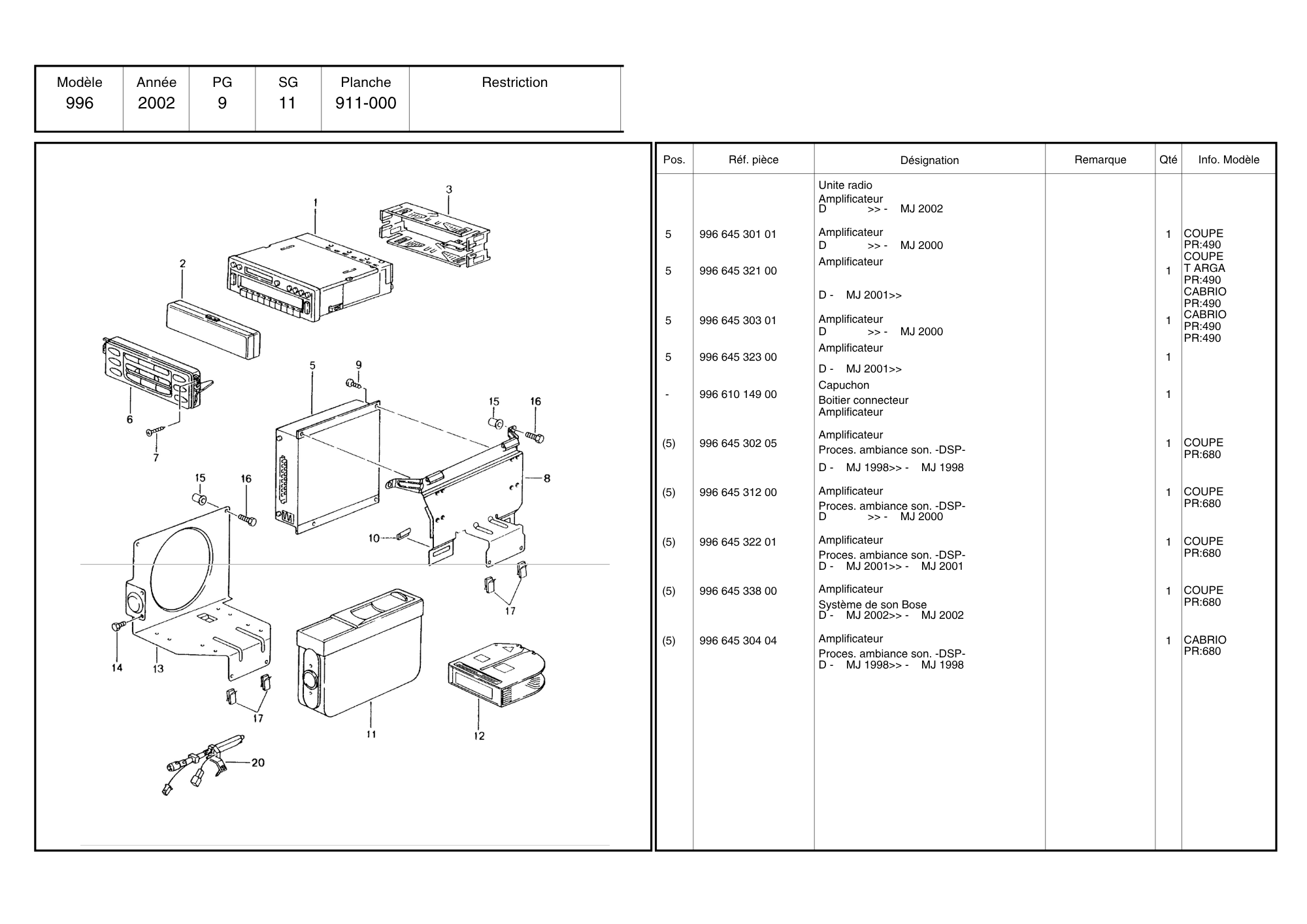 Home / 911 Turbo - 996T - GT2 / 2001>2005 / Equipement electrique / AMPLIFICATEUR RADIO PORSCHE 996 / 99664532201 / N°6252
