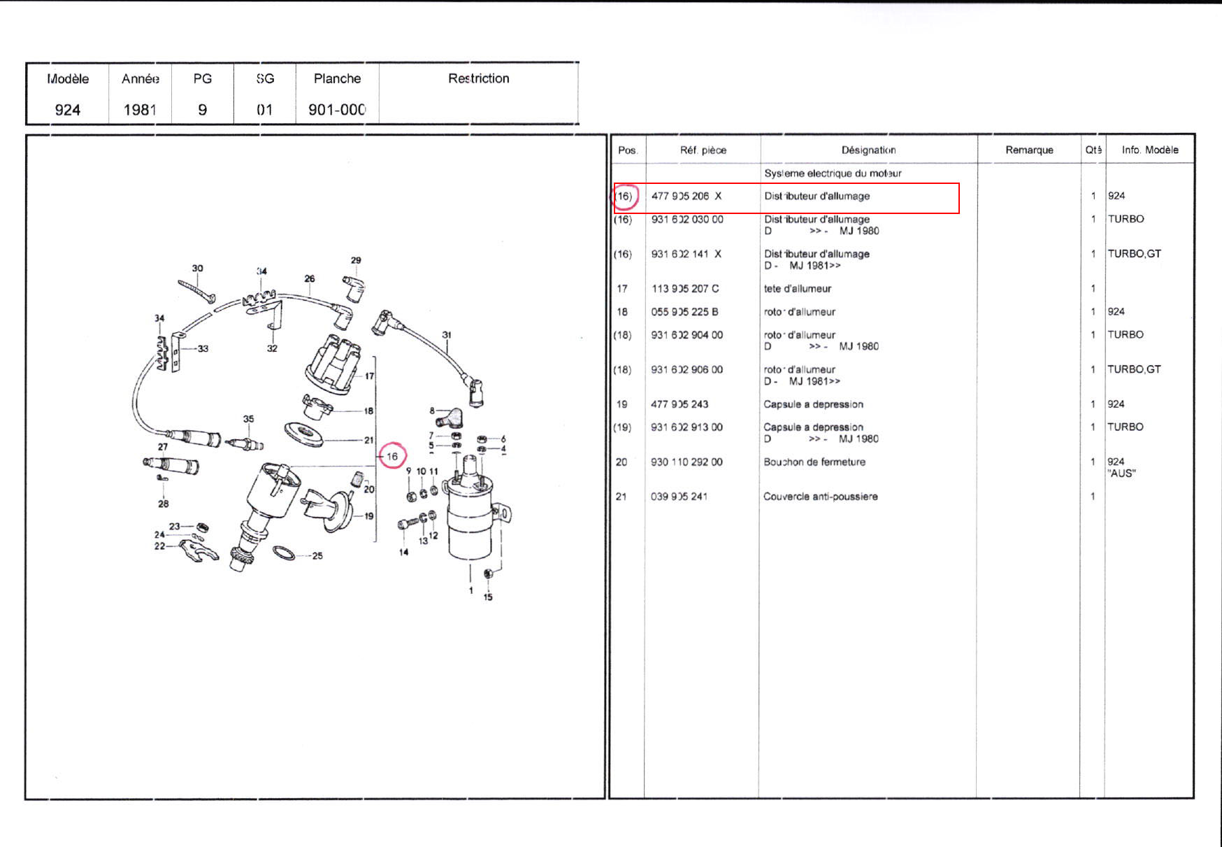 DISTRIBUTEUR D’ALLUMAGE / 477905206X / 0237002054 / N°4901