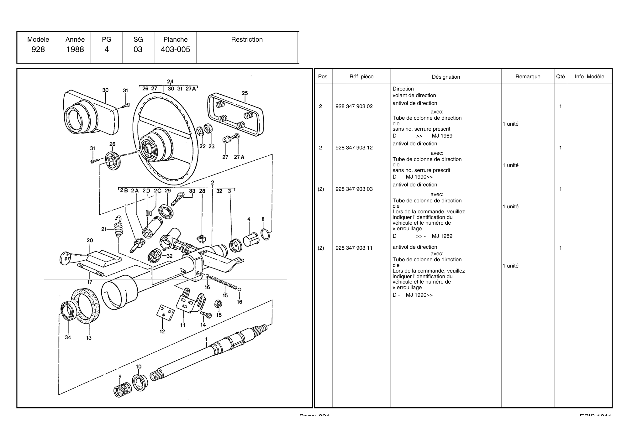 Accueil / 928 / 1978>1995 / Direction / ANTIVOL DE DIRECTION AVEC COLONNE DE DIRECTION COMPLÈTE PORSCHE 928 S4 / 92834790302 / N°6328