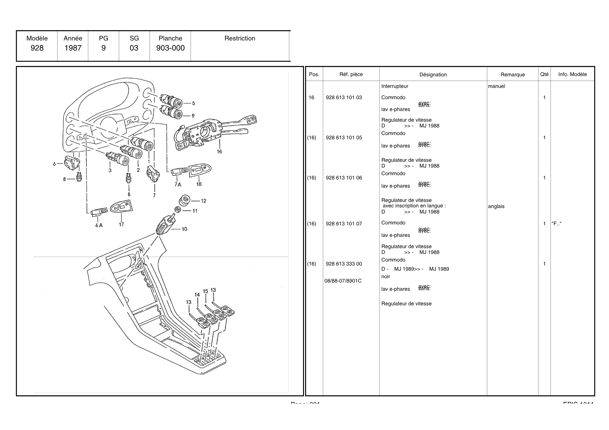 Accueil / 928 / 1978>1995 / Equipement electrique / COMMODO LAVE-PHARE & RÉGULATEUR PORSCHE 928 / 92861310107 / N°6296