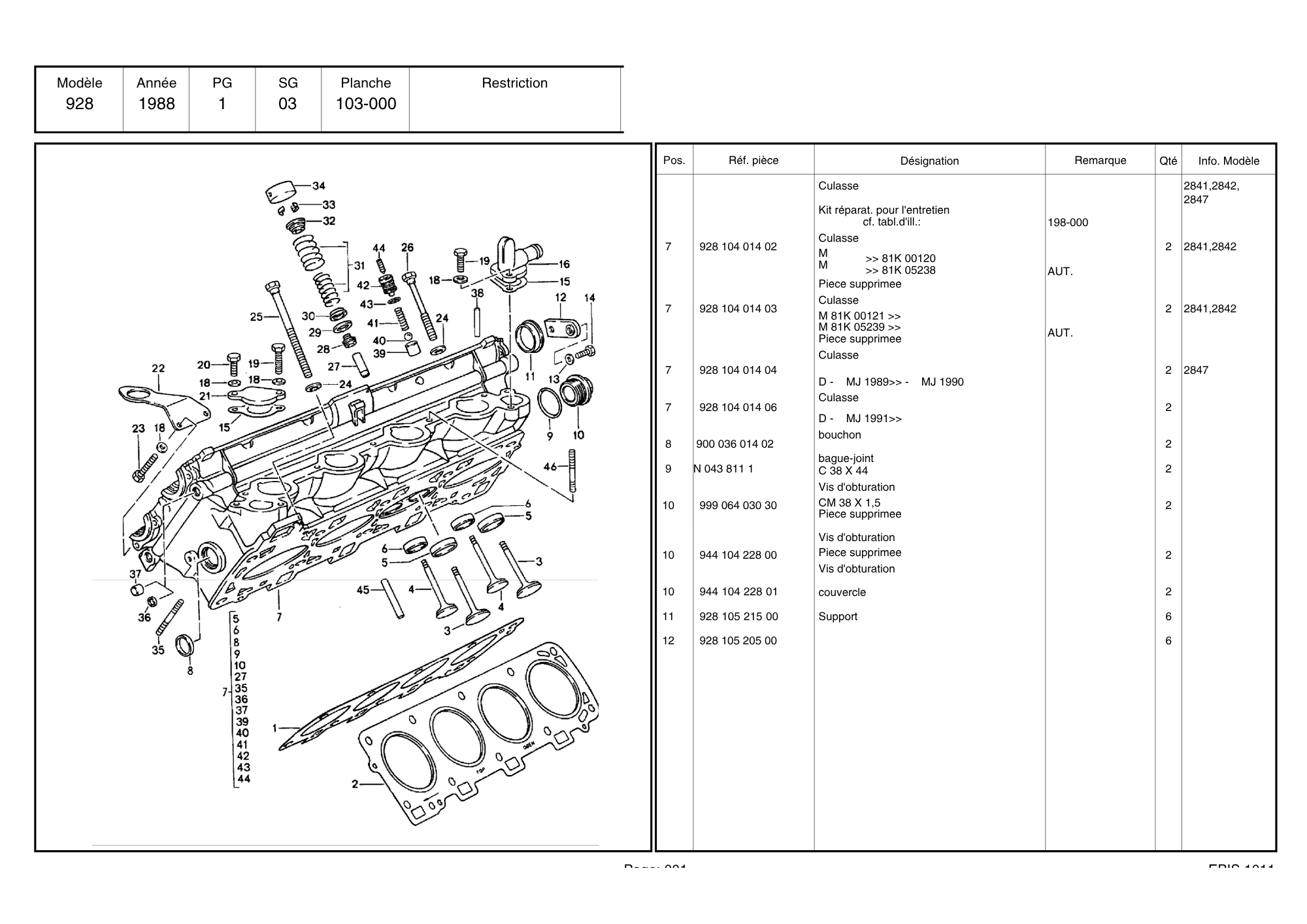CULASSE PORSCHE 928 / 92810401406 / N°6320
