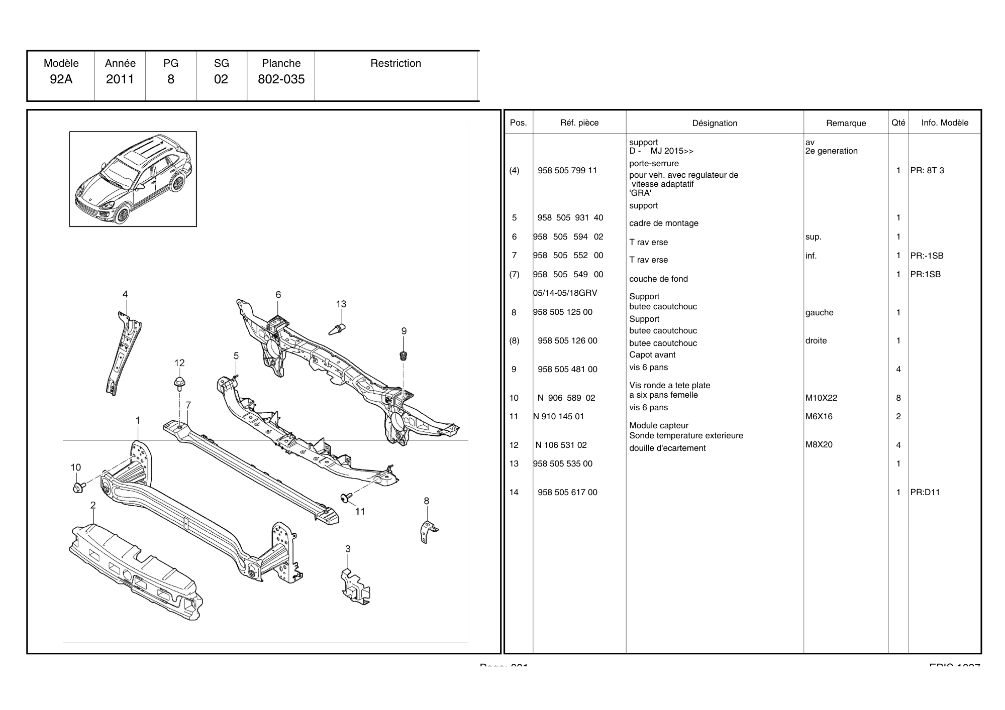 Accueil / 92A Cayenne / 2011 > / Carrosserie / CADRE DE MONTAGE PORSCHE CAYENNE 92A / 95850559402 / N°6348
