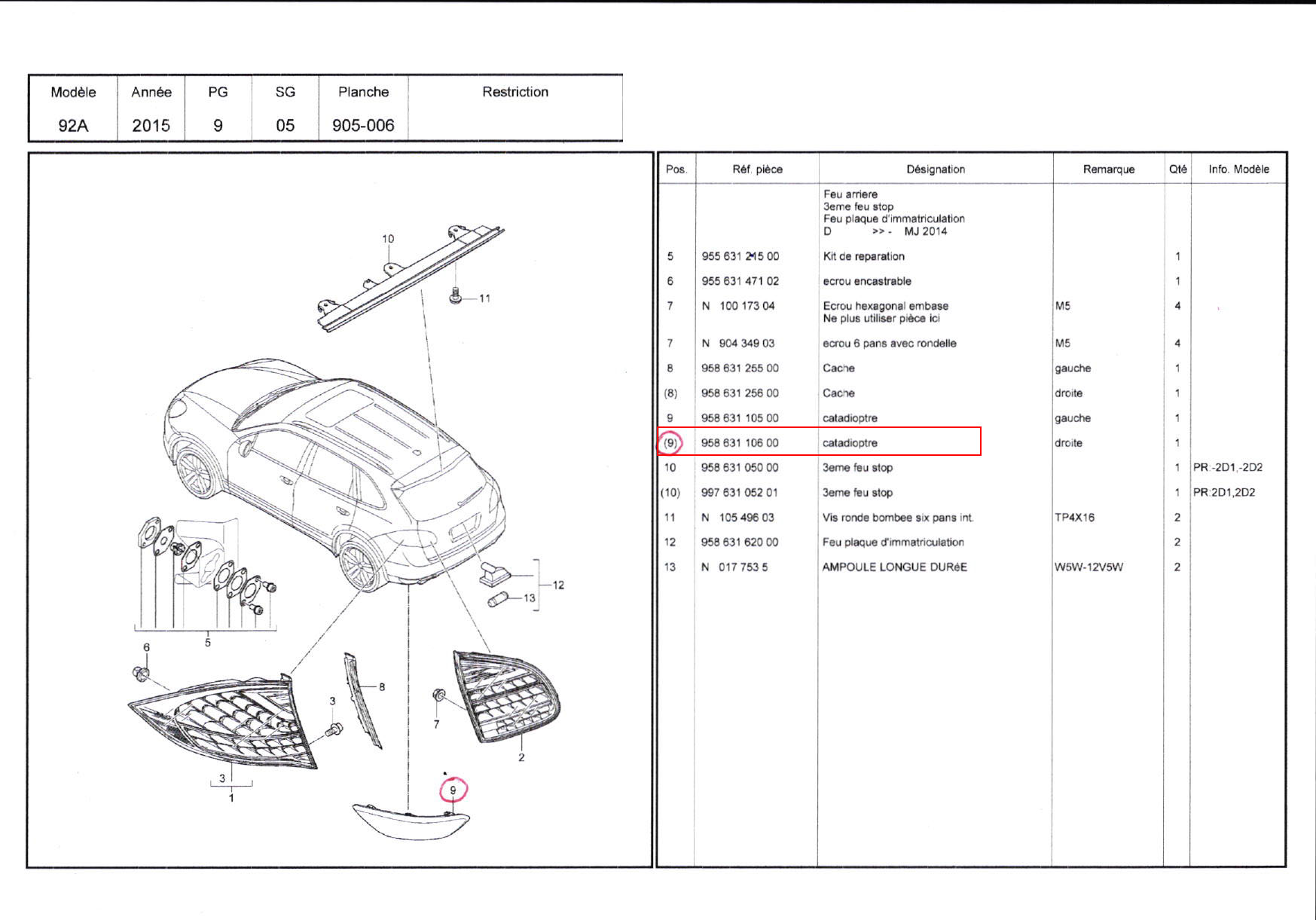 / CATADIOPTRE DROITE / 958945106 / 95863110600 / N°5155