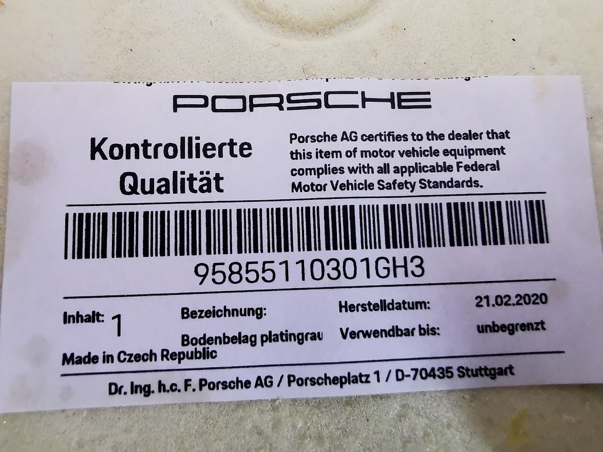 MOQUETTE SOL GRISE PARTIE AVANT NEUVE / 95855110301GH3 / N°4299