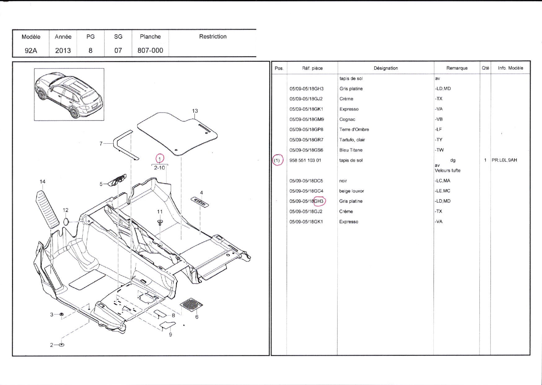 PIÈCES CAYENNE PHASE III N°3033
