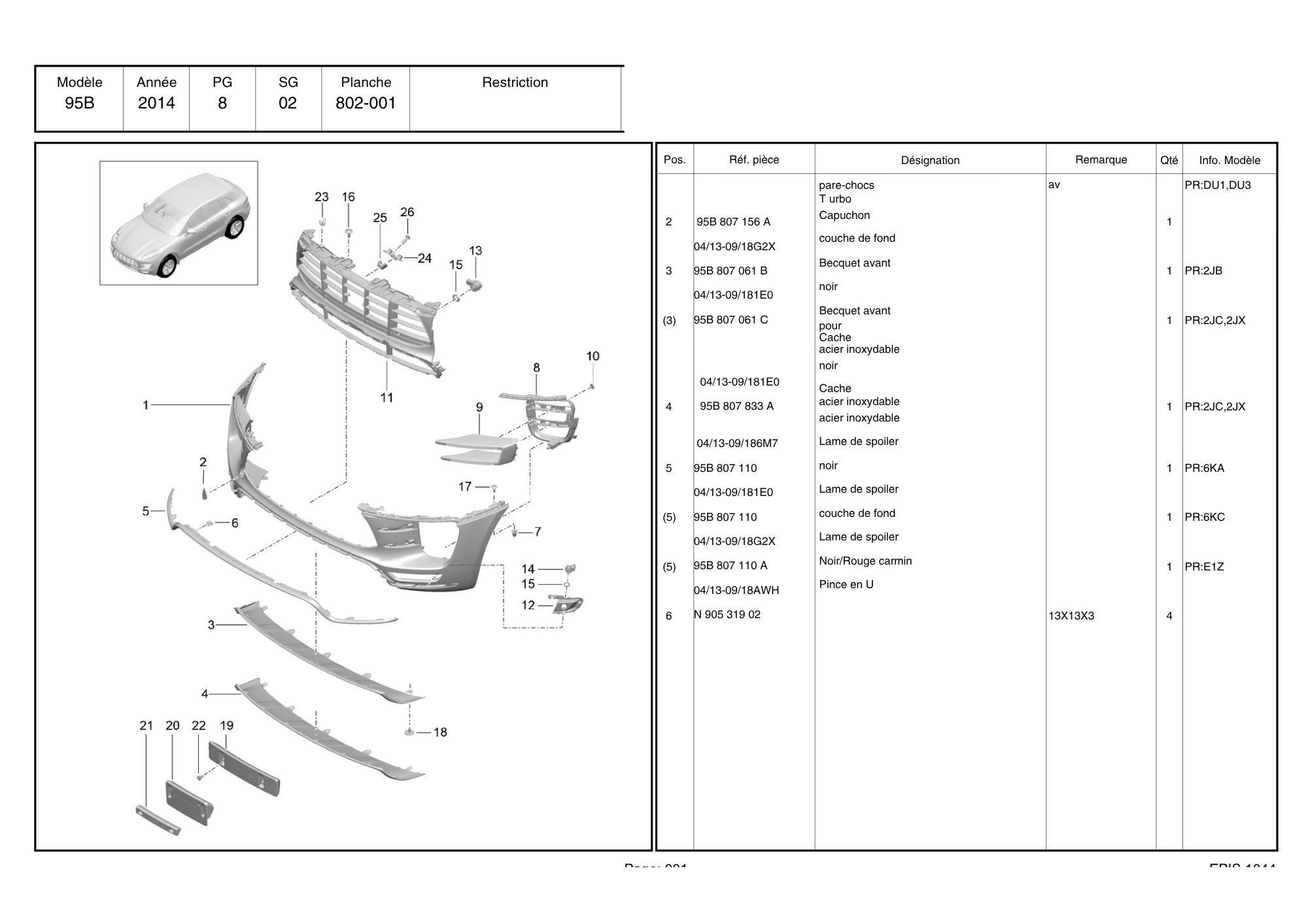 Référence Porsche : 95B807061B