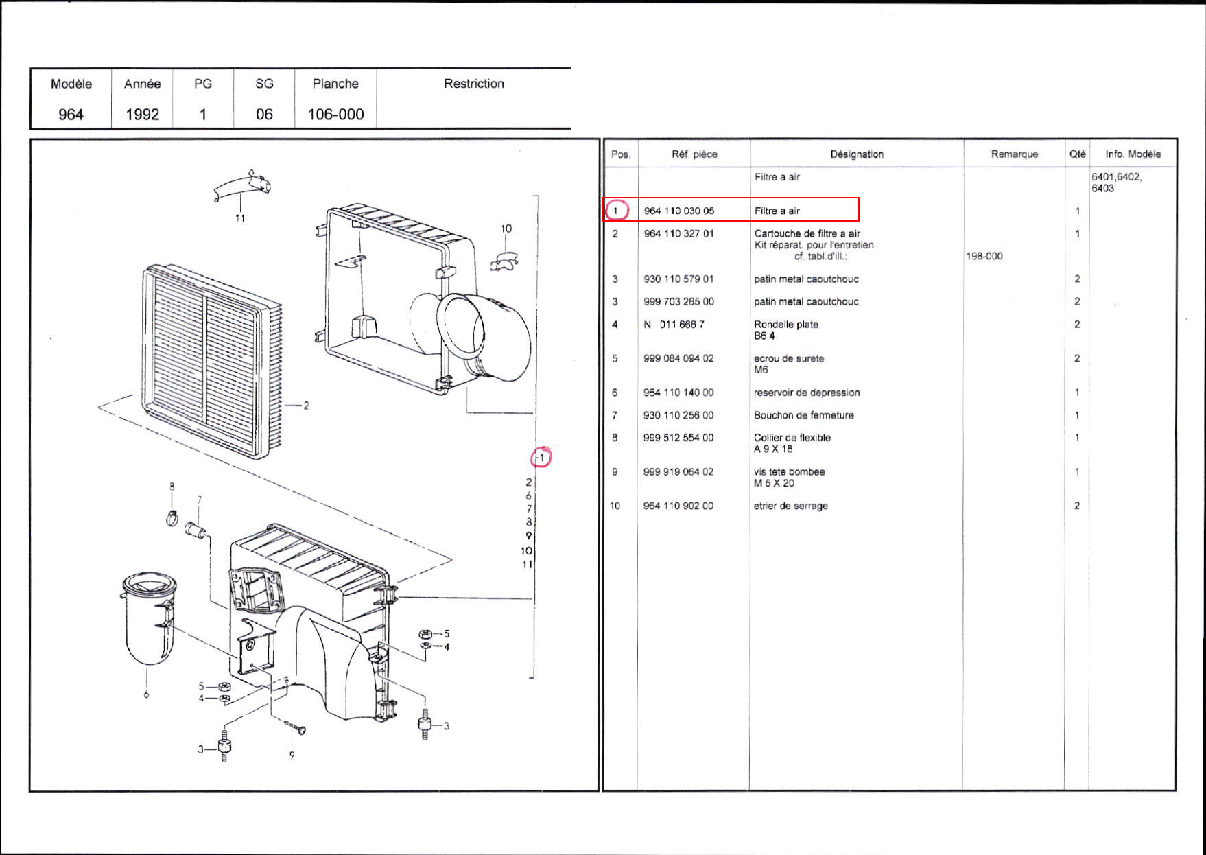 FILTRE À AIR / 96411003005 / N°5130