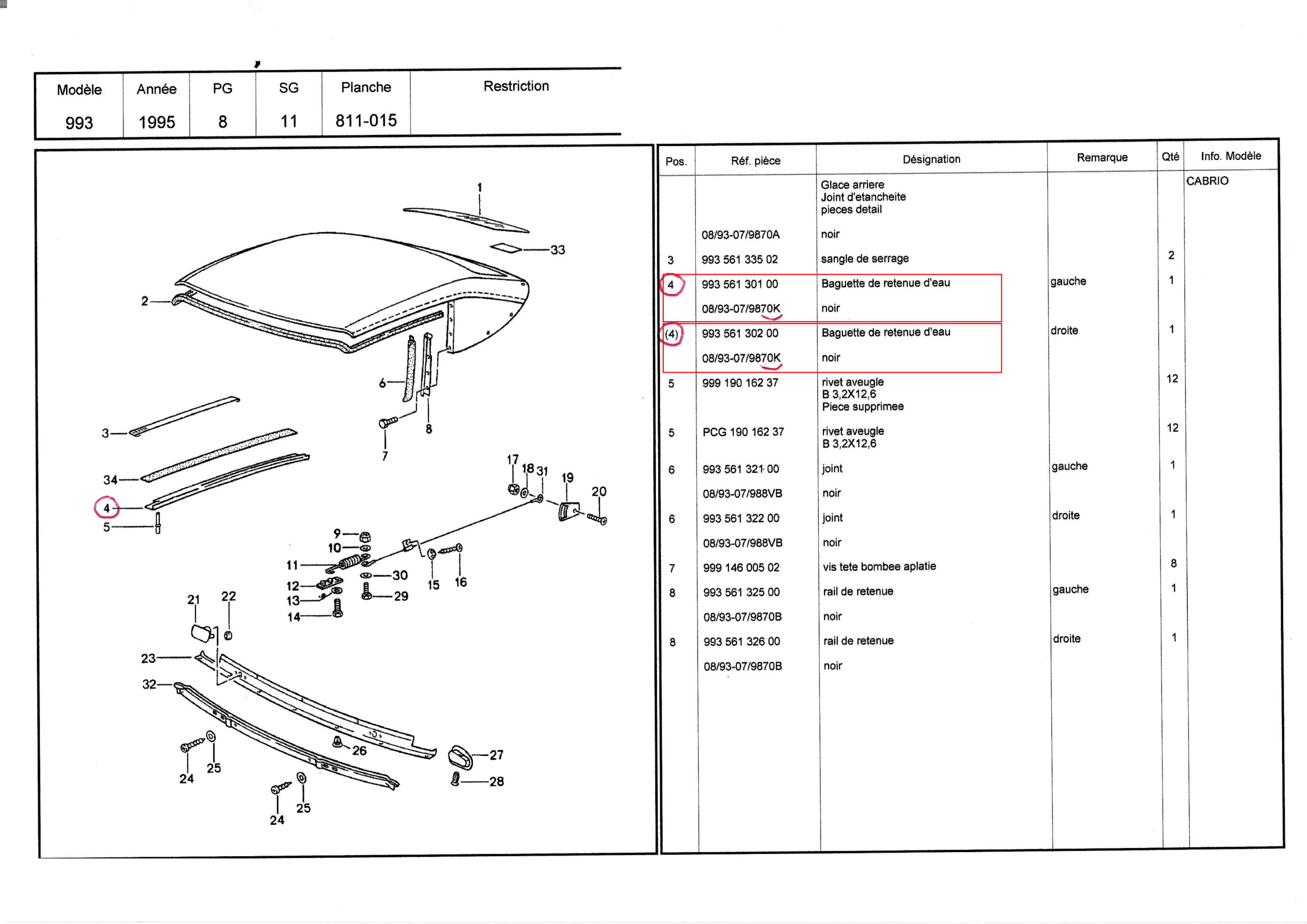 Accueil / 993 - 911 Carrera / 1994>1998 / Carrosserie / BAGUETTE DE RETENUE D’EAU POUR ARMATURE DE CAPOTE PORSCHE 993 CABRIOLET / 9935613010070K / 9935613020070K / N°6214