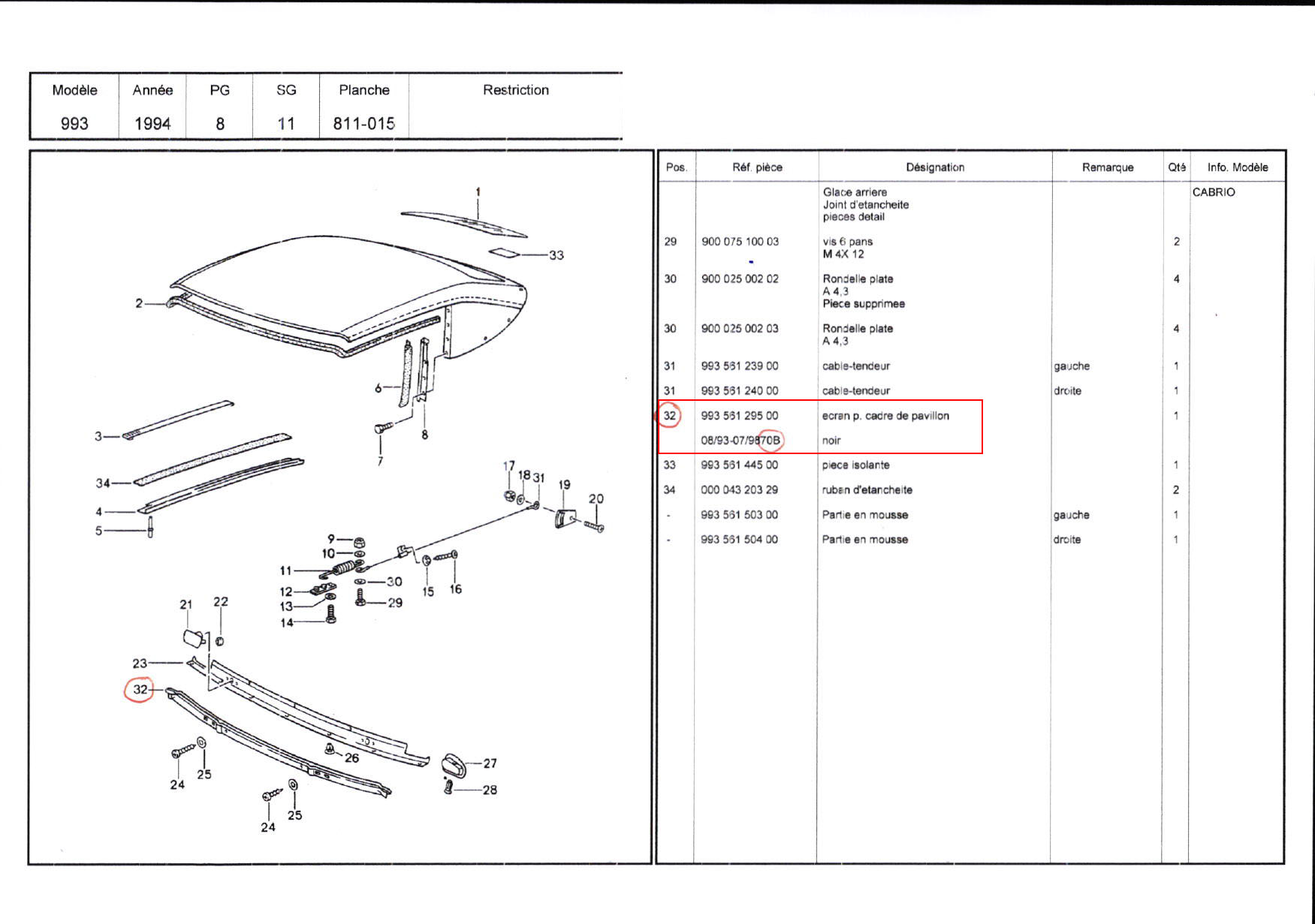 / ÉCRAN POUR CADRE DE PAVILLON / 99356129500 / N°4971
