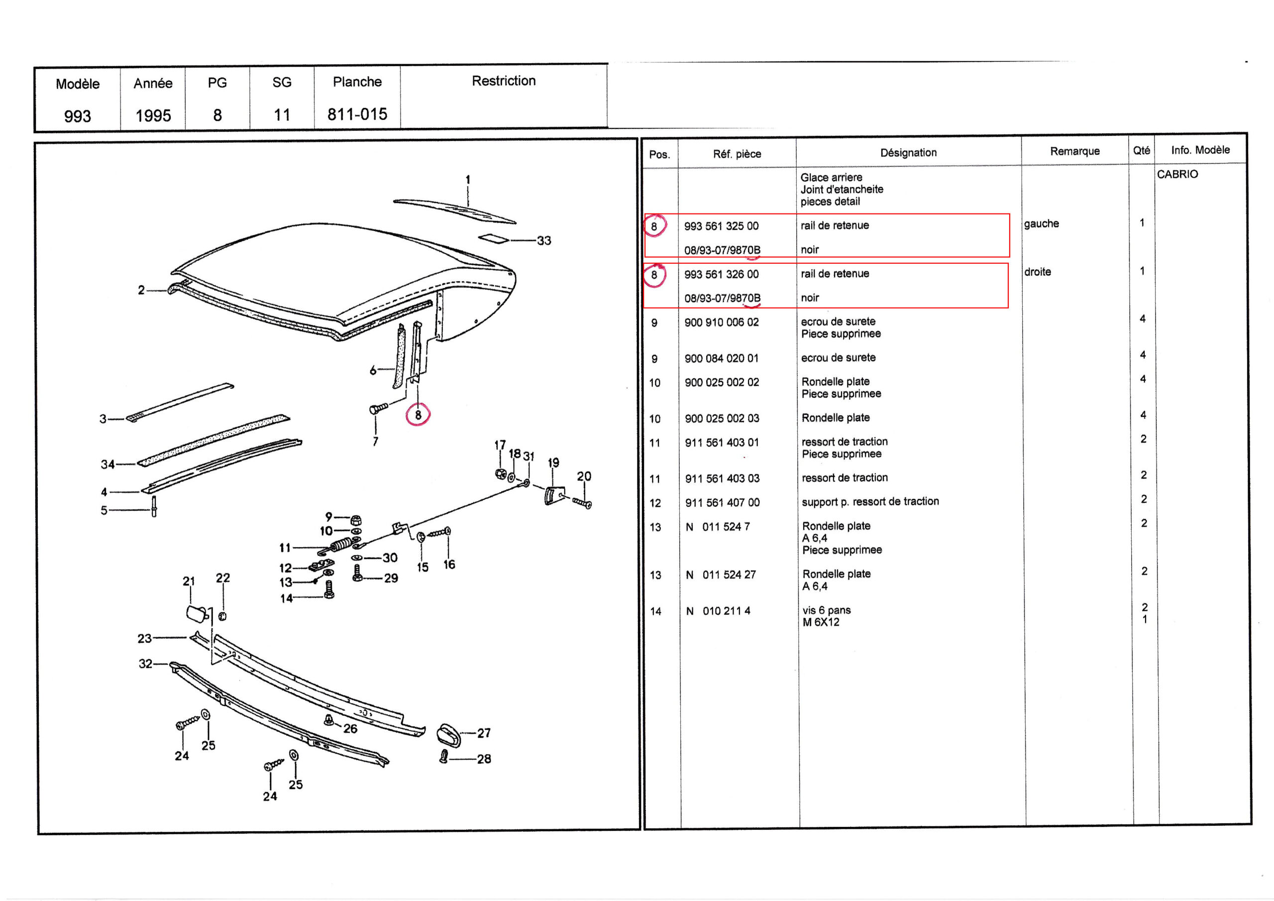Rail de retenue pour capote électrique Porsche 993 cabriolet disponible à la vente