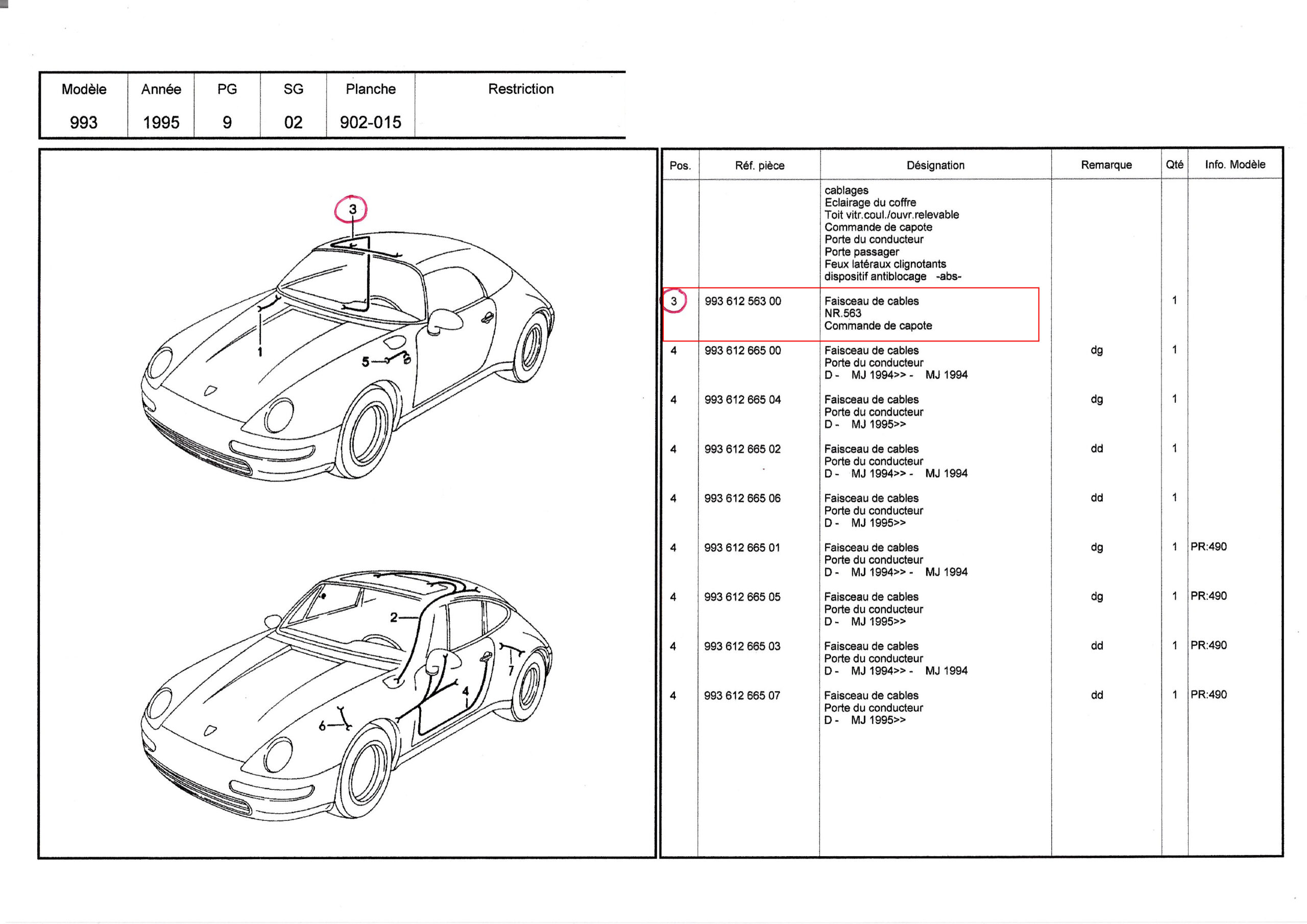 Home / 993 - 911 Carrera / 1994>1998 / Equipement electrique / FAISCEAU DE CÂBLES POUR COUVERCLE CAPOTE ÉLECTRIQUE PORSCHE 993 / 99361256300 / N°6207