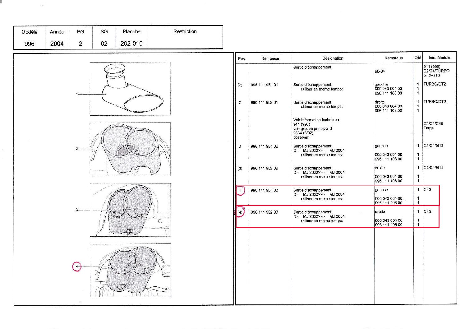 Sorties échappement REF 99611198103 côté gauche et REF 99611198203 côté droit