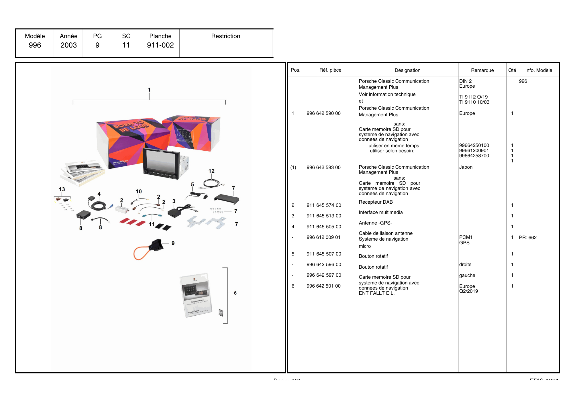 POSTE PORSCHE CLASSIC COMMUNICATION MANAGEMENT PLUS PORSCHE 996 / 99664259000 / N°6273
