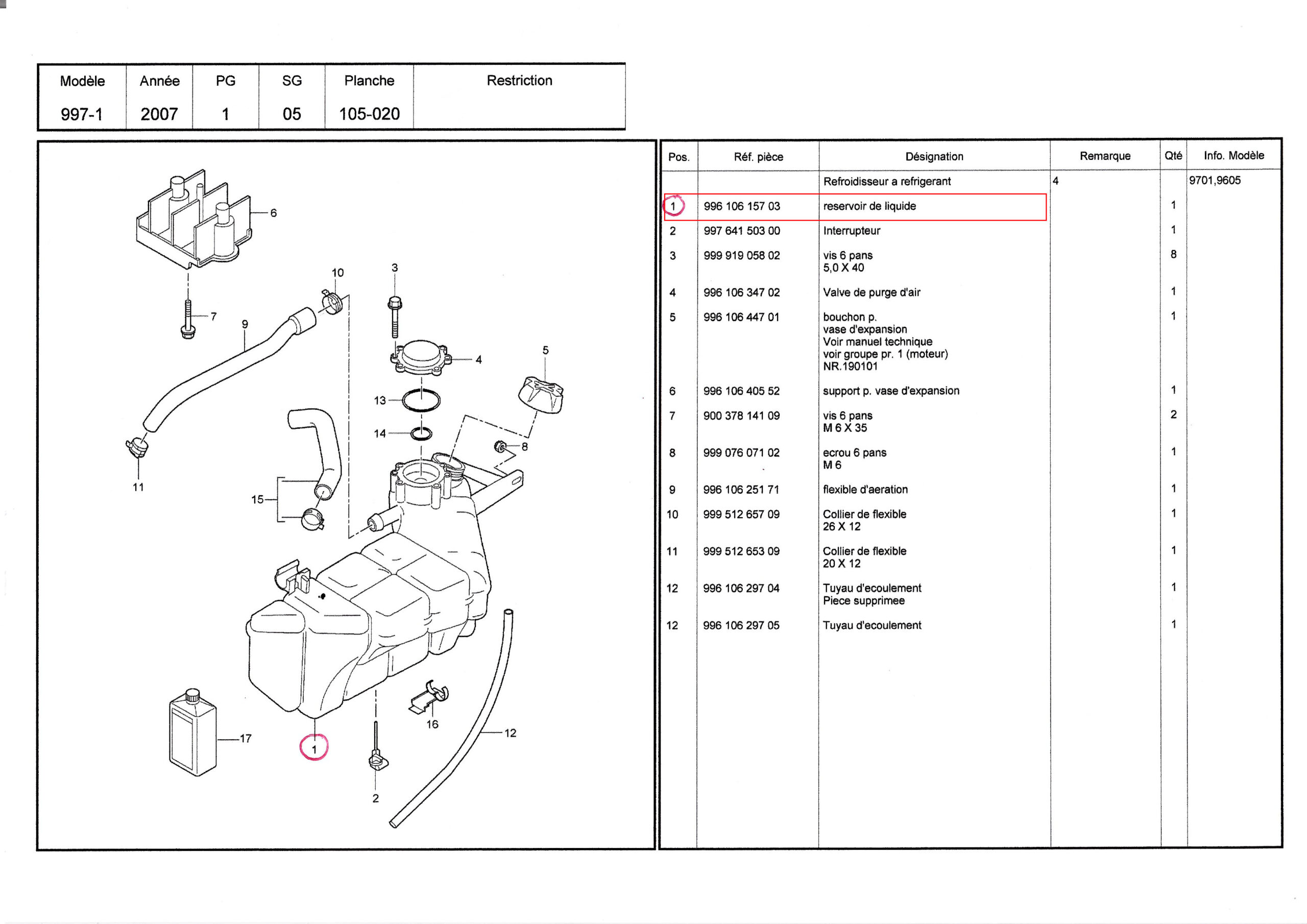Accueil / 996 - 911 Carrera / 1998-2005 / Moteur / RÉSERVOIR LIQUIDE DE REFROIDISSEMENT À EAU PORSCHE 996 / 99610615704 / N°6237