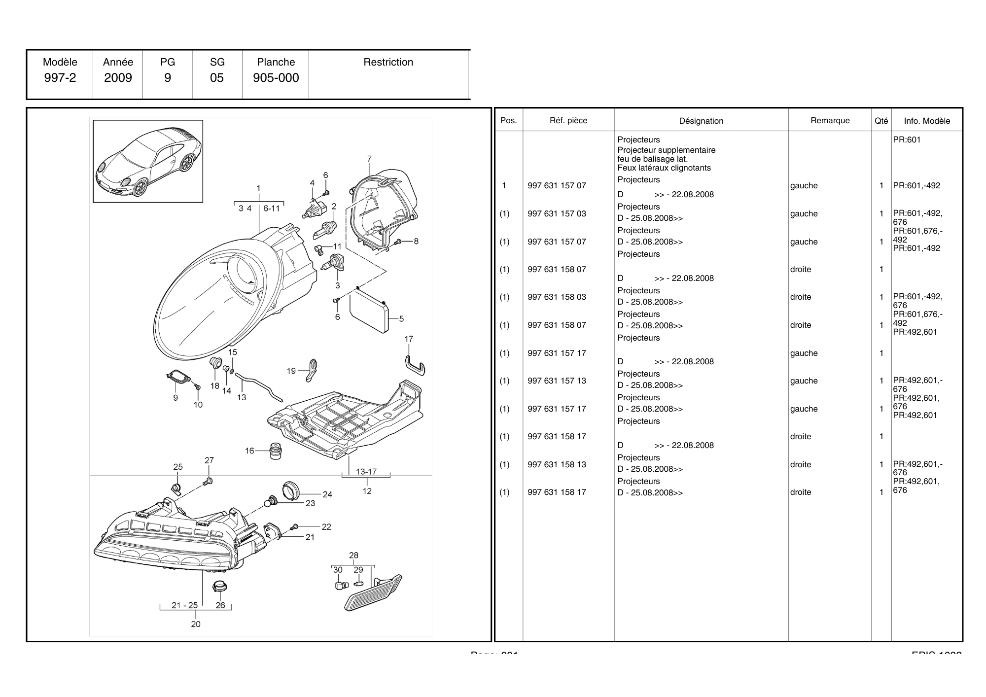 Phare avant gauche d’origine Porsche 997-2 disponible à la vente