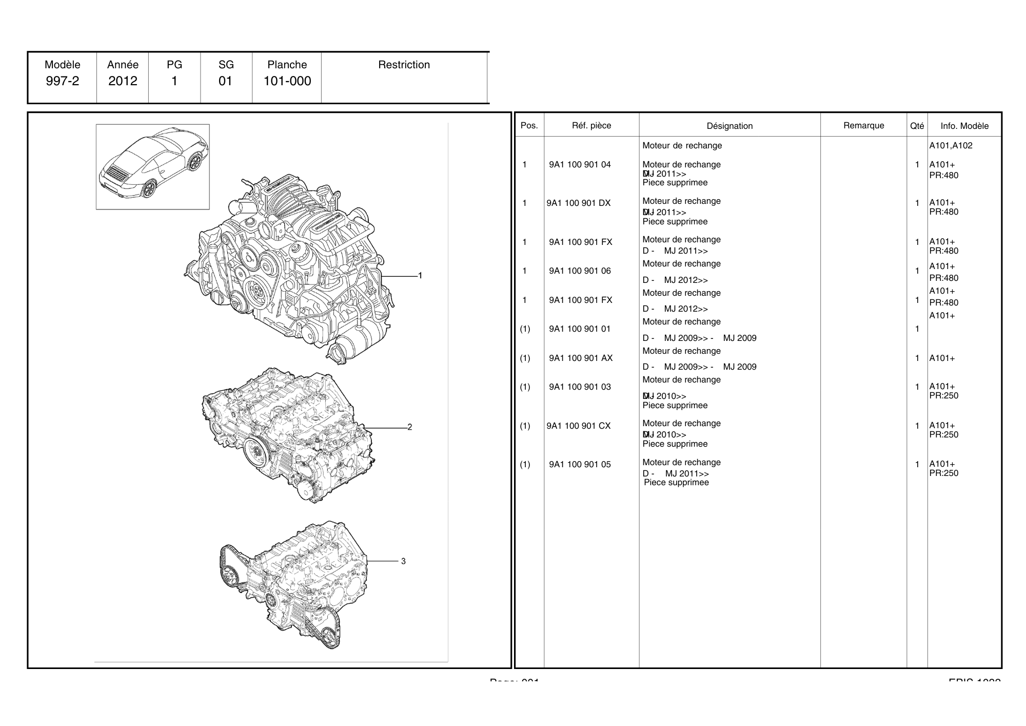 MOTEUR TYPE MA102 COMPLET OU PARTIEL PORSCHE 997-2 BV MÉCANIQUE ANNÉE 2012 / N°6288