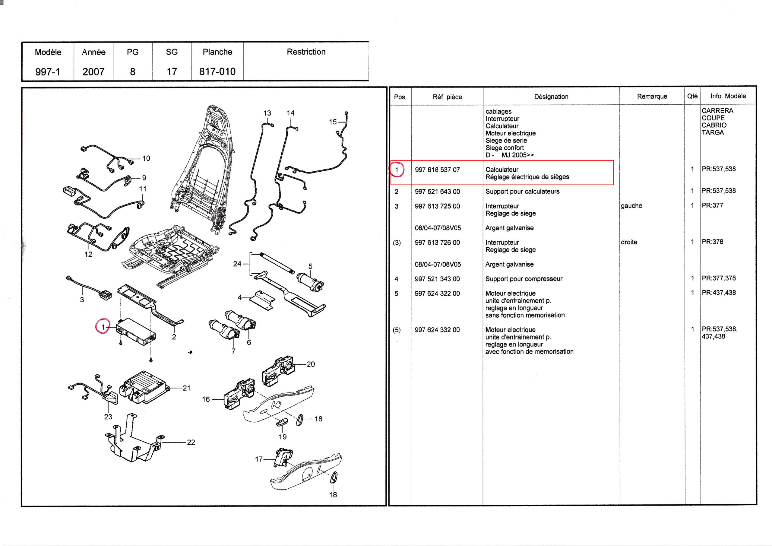 RS Diffusion, spécialiste en pièces détachées d’origine Porsche, vous propose à la vente ce calculateur pour réglages électrique des sièges d’origine Porsche 997 et compatible avec Porsche Boxster et Porsche Cayman. N’hésitez pas à nous contacter pour vous assurer de la compatibilité avec votre modèle.
