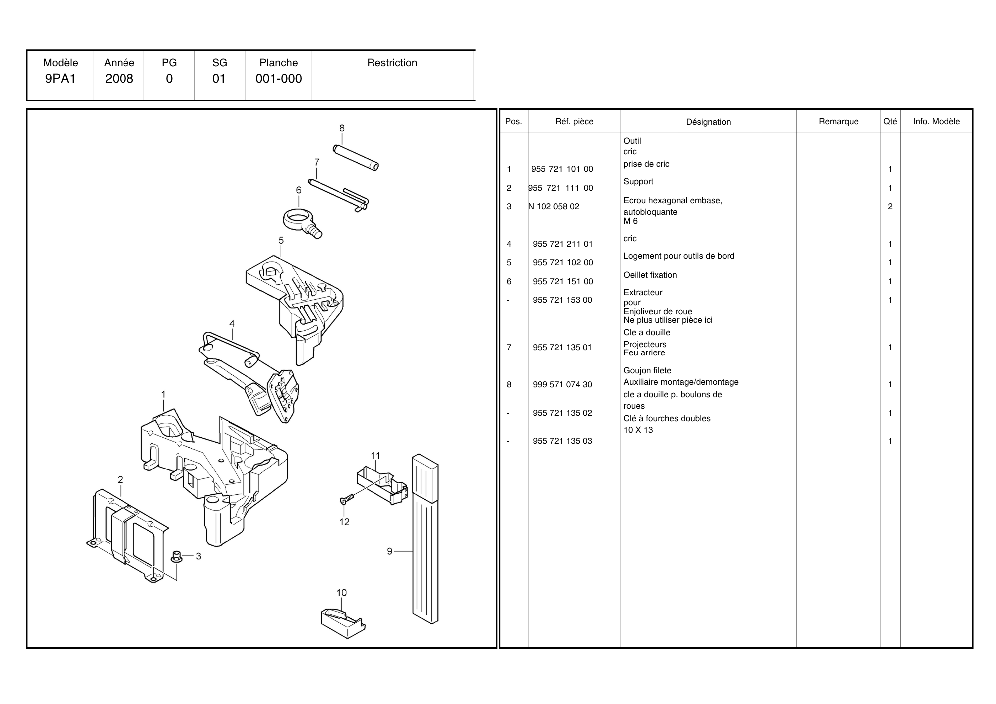 Outils, cric et support d’origine Porsche Cayenne disponible à la vente